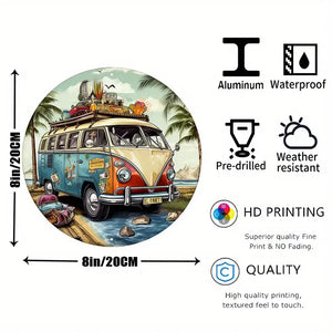 Bringen Sie mit diesem metallenen Aluminiumschild eine retro Atmosphäre in Ihr Zuhause. Ob als Wand-, Raum-, Bar- oder Cafédekoration oder in der Garage, das VW Bulli Design bringt spielerisch-coolen Charme in jeden Raum. Maße: 8''x8''/20cm*20cm.