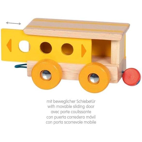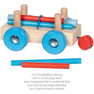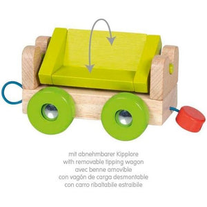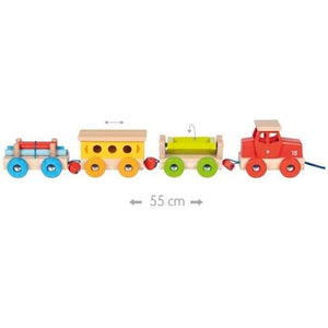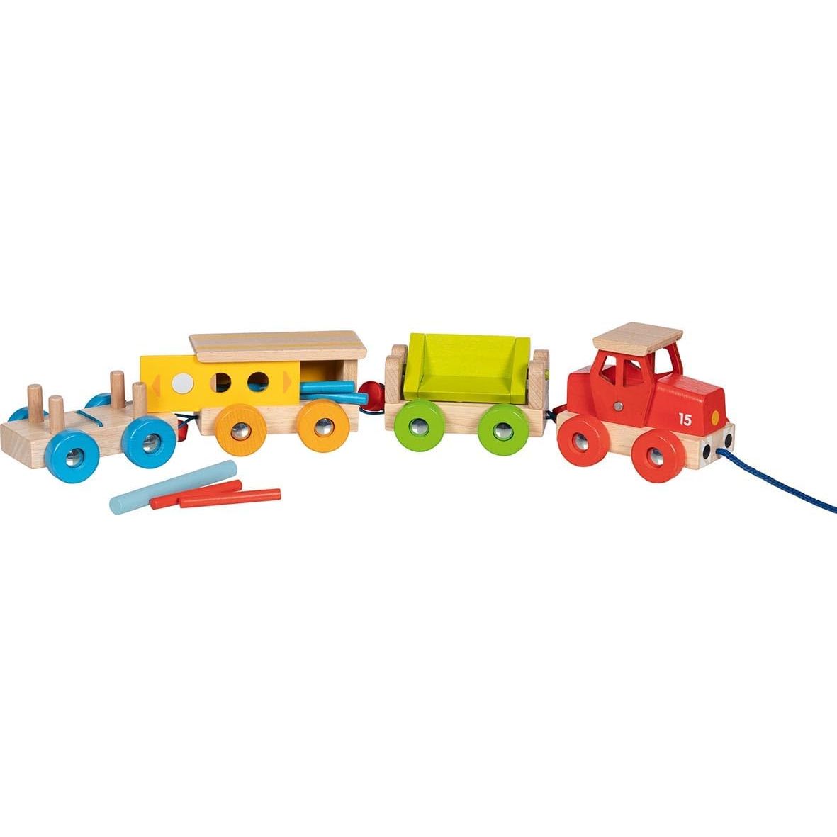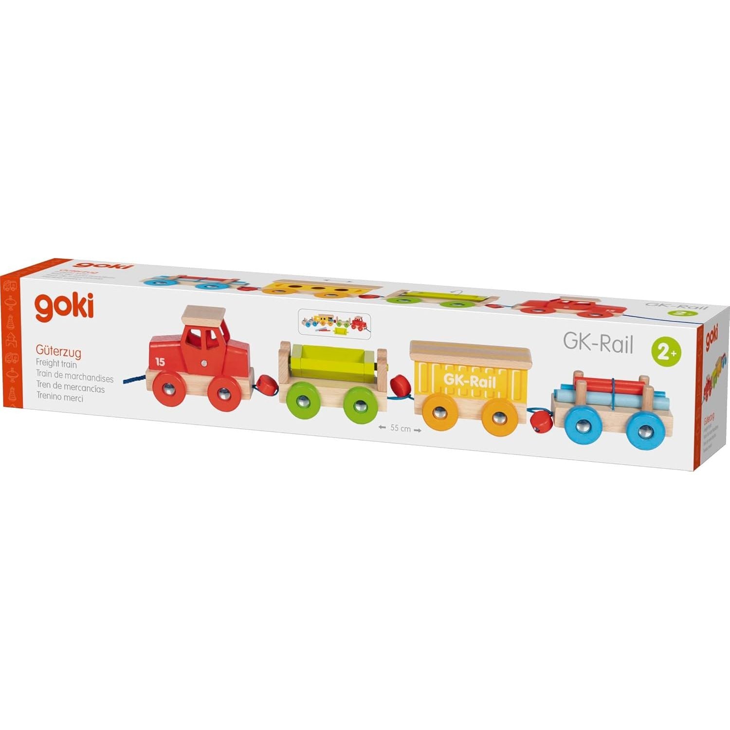 goki 55841 Güterzug GK-Rail – großer Spielzug aus Holz mit Lok, 3 Waggons und Ladung, zum Beladen und Ziehen, ca. 55 cm lang