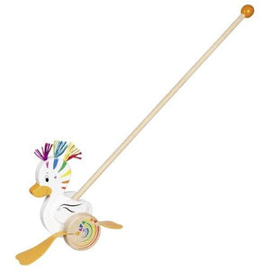 Goki Personalisierbar Regenbogen-Ente Holz-Schiebespielzeug, Flappende Füße, Kinder ab 18 Monaten