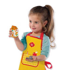 - Inhalt: Holz-Registrierkasse, Spielgeld, Belege, Einkaufstasche, Produkte, Schürze u.v.m.