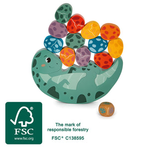 🎁 Inhalt: 1 balancierender Dino, 12 Dino-Eier, 1 Farbwürfel