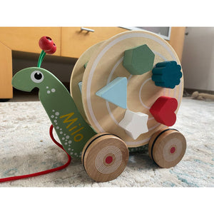 Personalisierte Nachziehe Schnecke mit Bauklötzen aus Holz!