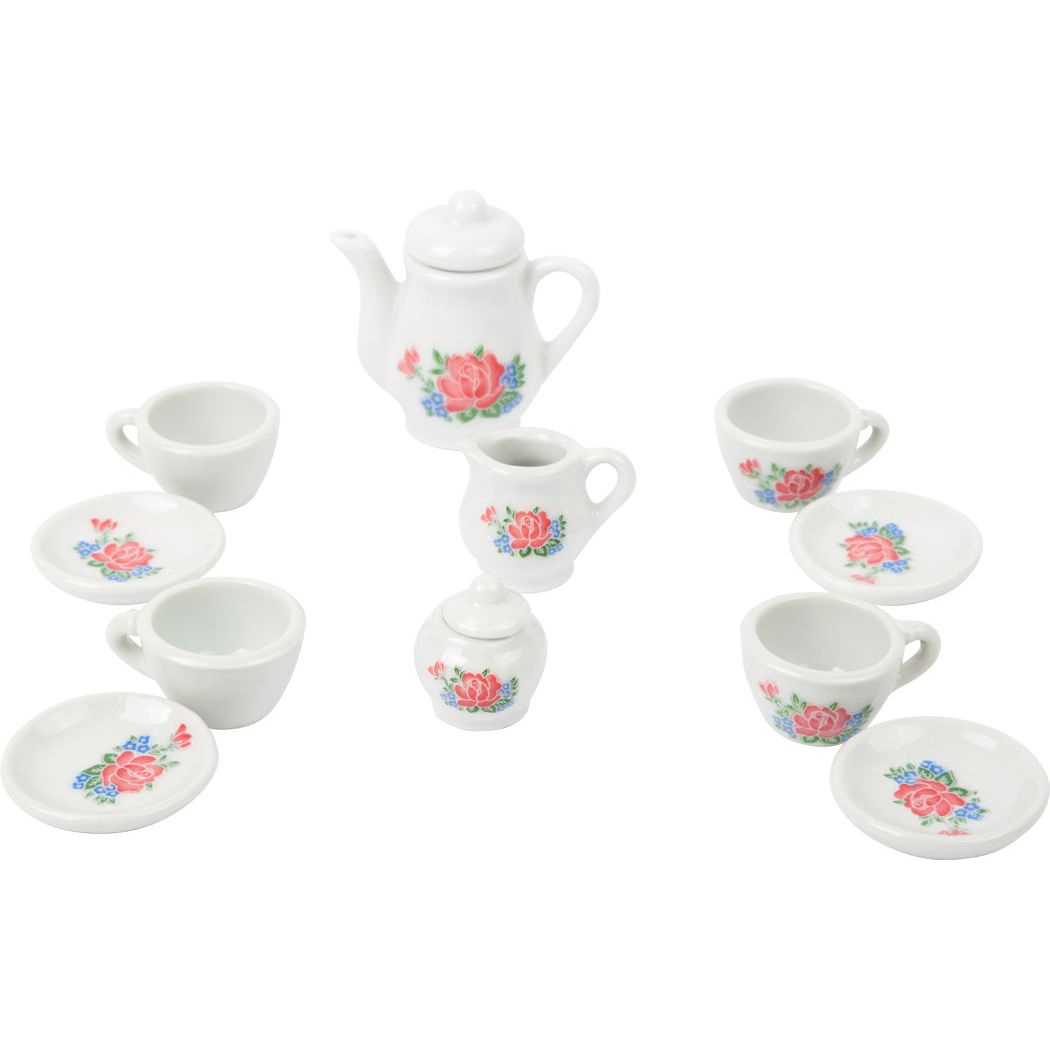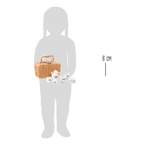 Einmal wie die Großen Tee servieren! Dieses liebevoll gestaltete Porzellan-Kaffeeservice im Koffer von small foot lädt Kinder ab 3 Jahren zu fantasievollen Rollenspielen ein. Die zarten Rosenmotive auf echtem Porzellan und der geflochtene Kunststoffkoffer mit rot-weiß kariertem Innenfutter machen jede Puppenrunde zu einem besonderen Erlebnis.