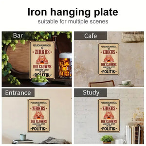 Mitreißendes Wandschild: Retra Schild Personalengpass im Zirkus, Clowns jetzt in der Politik, aus witzigem Aluminium gefertigt. Lachtänen vorprogrammiert! Perfekt für Innen- und Außenbereiche wie Bars, Cafés, Eingänge und Studien. Einfache Wandmontage möglich. Multifunktionales Design, 30,48x20,32cm.