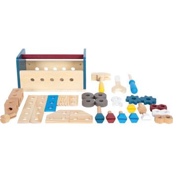 Mit dem small foot Werkzeugkasten aus Holz, der sich im Handumdrehen zur Werkbank verwandelt, haben kleine Baumeister:innen ab 3 Jahren ihr Werkzeug immer dabei. Hammer, Schraubendreher, Schraubenschlüssel & jede Menge Zubehör sorgen für endlosen Bau- und Rollenspielspaß.