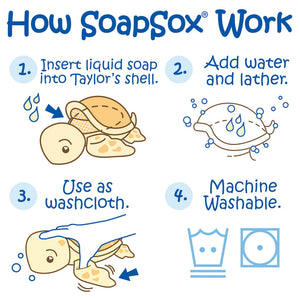 SoapSox Badeschwamm Schildkröte – weicher Waschfreund mit Seifenfach | ab 0 Jahren