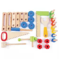 Kinder Werkzeugkasten mit Werkzeugen Spielzeug-Set Holz pädagogisches Bau-Reparatur-Kit Vorschule Montage Spiel