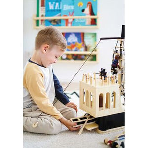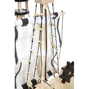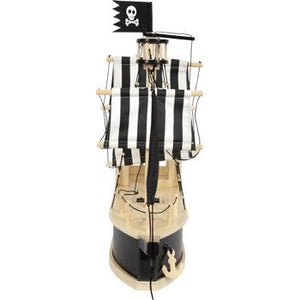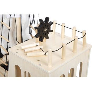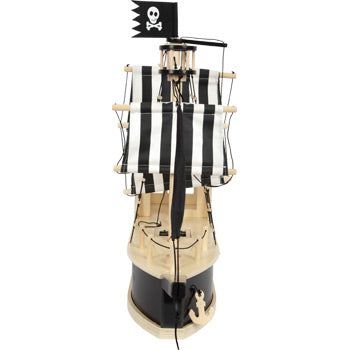 - geräumiges Piraten-Spielschiff aus robustem Holz mit viel Stauraum im Schiffsbauch und abnehmbaren Masten
